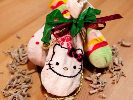 Μια καλή ιδέα είναι να χρησιμοποιήσετε αντί για υφασμάτινα σακουλάκια τις παλιές κάλτσες των παιδιών ή τις δικές σας.